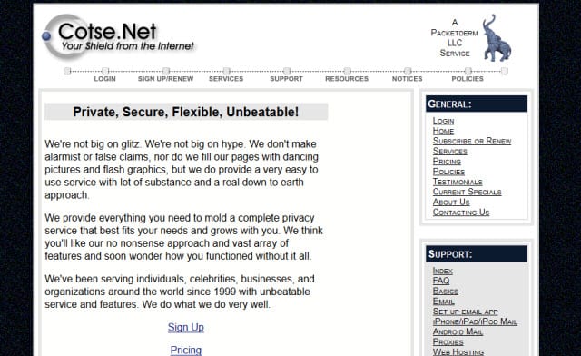 该服务是由一群有才华的 Unix 爱好者创建的。Cotse 还提供定期折扣 每支付六个月即可免费获得一个月。